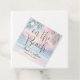 These custom favor tags feature a pastel watercolor beach scene on the front, with a soft sunset in shades of pink, purple, and teal blue. Palm tree fronds frame the top, adding a tropical and elegant touch. “On The Beach” appears in flowing script, with the couple’s names and wedding date below in a clean serif font for a polished and balanced look.