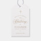 Gold Elegant Calligraphy Christening Favor Gift Tags présente une délicate croix moderne, associée à un type moderne et un magnifique script de calligraphie.