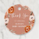 Ces adorables étiquettes cadeaux de baby shower présentent un style boho tendance et un script manuscrit tendance qui dit "merci". Une terre cuite et une feuille d'eau de pêche neutre de fleurs apparaît à la frontière, avec la verdure et les feuilles. Ces étiquettes se coordonnent parfaitement avec notre collection de baby showers "orange terracotta boho rainbow".