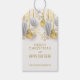 Une étiquette de cadeau de faveur comporte votre nom et le vœu Joyeux Noël et Bonne Année dans une écriture chic accentuée d'un design d'ornements et de flocons de neige argentés et dorés. ARTICLES correspondants dans notre collection.