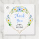 Ce baby shower magnifique et élégant vous remercie faveur tag caractéristiques d'aquarelle bleu oublier-me-nots, marguerites et feuillage sur un cadre géométrique or. Le texte combine écriture manuscrite et polices serif pour un look élégant et moderne. Il est parfait pour un baby shower rustique de printemps ou d'été.
