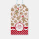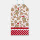 Un motif de biscuits en pain d'épice de vacances décore ces étiquettes cadeaux de Noël. Personnalisez-les avec votre monogramme. Bordure de l'étiquette cadeau a un motif de pois rouge et blanc avec votre nom monogramme. Décor festif et festif de Noël. Conçu pour vous par Blackberry Boulevard.
