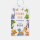 Un Merci d'anniversaire de dinosaure Tag est un invitation de fête à thème avec des graphiques amusants de dinosaures, des couleurs audacieuses et des textes ludiques comme "Stomp, Chomp, et Roar!" Les dessins populaires sont composés de dinosaures de dessins animés, d'arrière - plans d'inspiration fossile ou de paysages de jungle. Parfaits pour les enfants qui aiment les dinosaures, ils donnent le ton d'une fête préhistorique sur le thème de l'aventure !