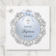 Étiquettes Cadeau Parties scintillant Argent Cadre Bleu Bow Baptême