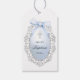 Étiquettes-cadeau Parties scintillant Argent Cadre Bleu Bow Baptême