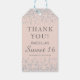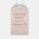 Blush rose Sweet 16 anniversaire de fête "Merci" étiquettes cadeau avec parties scintillant argent et le nom de l'invité d'honneur écrit dans une élégante police calligraphie/script. La couleur arrière - plan et textuelle de ces étiquettes cadeaux sont entièrement personnalisables, donc design avec des couleurs pour votre célébration.