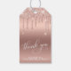 Elégant et chic personnalisé 75ème anniversaire fête merci pour les étiquettes cadeaux. "75 & Fabulous" et "merci" sont écrits en écriture blanche stylisée contre un arrière - plan rose en or avec des gouttes de parties scintillant en or rose.