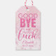 Un superbe effet de parties scintillant rose adieu et bonne chance fête de faveur tag. Ce design féminin est la meilleure façon de souhaiter à quelqu'un de bien dans sa prochaine aventure. Personnalisez avec notre propre nom personnalisé et la date de fête. La typographie rose et blanche sur un arrière - plan d'effet bulle.