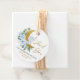 Ces étiquettes de faveur fantaisie sont ornées d'un petit éléphant doux assis sur une lune bleue fleurie et verte ornée de croissant. Objets correspondants disponibles en magasin ! c) Le Happy Cat Studio