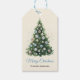 Send warm wishes this season with this elegant personalized Christmas gift tag featuring a classic Christmas tree adorned with delicate ornaments and soft holiday sparkle. The script “Merry Christmas” message is paired with your family name or custom text for a festive, personal touch. All text is customizable.