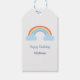 Un tag cadeau avec un joli arc-en-ciel pastel et ses deux nuages bleus et des textes personnalisables à ajouter à un cadeau d'anniversaire ou un cadeau de remerciement!