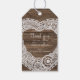Étiquettes-cadeau pays mariage bois rustique dentelle coeur brun bla