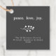 Paix. Amour. Joy Typographie en blanc avec des baies blanches. Texte prêt à customiser avec votre nom et votre adresse. Arrière - plan gris foncé