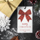 Add a timeless and elegant touch to your Christmas gifts with this personalized Merry Christmas gift tag. Featuring a classic red plaid bow on a textured white background with festive red typography, this design is perfect for traditional, rustic, and elegant holiday wrapping.