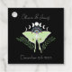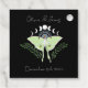 Un bouillonnant papillon de nuit vert est entouré de phases de lune et de feuilles verts luxuriants contre un arrière - plan noir profond.