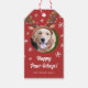 Ce cadeau de Noël festif est parfait pour tous les amoureux de les chiens de votre vie! Doté d'une adorable photo d'un chien de repérage d'or portant un casquette de rennes contre un arrière - plan rouge, cette étiquette-cadeau amusante apportera un sourire à tous. La photo peut être changée en une photo de votre propre chiot ou du chiot de votre destinataire ! L'arrière - plan a de jolis flocons blancs et texte modifiable qui dit Happy Paw-lidays. Sous le texte de salutation, ajoutez votre nom de famille ou un autre texte. Cette étiquette cadeau personnalisée est la meilleure façon d'ajouter une touche de gaieté de vacances à vos cadeaux de saison. Alors commandez votre étiquette cadeau de Noël aujourd'hui ! C'est la façon parfaite de montrer à vos proches combien vous vous souciez de cette période de vacances.
