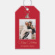 Étiquettes-cadeau Photo de fête avec Cerf d'hiver Noël Rouge