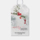 Étiquettes-cadeau Pine Sprig Red Berries Snowstorm Joyeux Noël