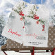 Un détail d'aquarelle peinte branche de pin sprig et des baies rouges dans une tempête de neige met en évidence cette étiquette cadeau de Noël joyeux qui comprend un nom et une option date/année.