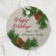 Un voeu classique de "Happy Holidays" sur des aiguilles de pin vert rustique branches de pin rose motif de couronnes sur un faux arrière - plan motif en tissu beige brun beige taupe. Avec l'option de customiser ou de personnaliser avec votre nom de famille et (limité) le texte de votre choix.