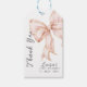 Thank your guests in the sweetest way with this elegant Pink Bow Girl First Birthday Party Gift Tags. Featuring a delicate pink bow design and soft blush tones, it perfectly matches a pink bow themed first birthday party for girls.