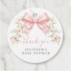 Add a sweet and charming touch to your baby girl shower with these adorable thank you favor tags, featuring cute pink bows adorned with soft pink spring flower blooms. Perfect for coquette themed baby showers, spring or summer celebrations, and pink floral party décor, these delightful favors make a lovely keepsake your guests will adore.