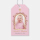 Étiquettes-cadeau Pink Girl Baptism Photo Floral Orchids Gold Arch