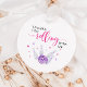 Sympa bole thème de bowling fille's anniversaire marque de faveur avec l'aquarelle illustration d'une boule de bowling frappant quelques épingles avec des étoiles rose et violet volant. Le texte dit "merci d'avoir roulé avec moi."