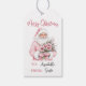 Add a festive and feminine touch to your holiday wrapping with this holiday hang tag featuring a stylish watercolor Santa Claus in the center. Santa is dressed in a soft pink coat and matching hat, holding a bouquet of pink poinsettias, holly berries, and pine sprigs—bringing a whimsical and fashion-forward feel to your gift presentation.