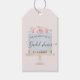Étiquette cadeau représentant un gâteau à une couche associé à des fleurs délicates sur fond rose. Toutes les informations sont en élégante police serif avec une police de caractères script personnalisée. Découvrez notre magasin pour les articles assortis et contactez-nous si vous avez des demandes personnalisées.