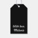 Étiquettes-cadeau Polka noire croise sur fuchsia