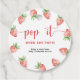 Balise de faveur baby shower fille mignonne avec l'aquarelle illustration de fraises. Le texte dit "Pop it! Quand elle apparaît." Éléments correspondants disponibles.
