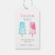 Le genre mignon et moderne révèle la marque de faveur du parti avec l'aquarelle illustration de popsicles rose et bleu. Le texte dit "merci de célébrer avec nous."