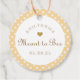 Des étiquettes de cadeau/faveur rondes personnalisées avec "Meant to Bee" sur des points jaunes préppy arrière - plan. Personnalisez avec les noms des mariés et des mariés et la date du mariage. Attachez les étiquettes sur les pots de miel pour une touche de style à do-it-yourself les faveurs de mariage au miel et les cadeaux.
