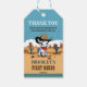 Premier Rodeo mignon cowboy bébé cheval fête d'anniversaire merci faveur étiquettes cadeaux, adorable cheval blanc bébé dans un casquette cowboys et décoré selle sur Arizona paysage sauvage ouest pour cowboys western chevaux thème fête d'anniversaire