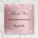 Un arrière - plan de dégradé rose avec fausse parties scintillant, mousseux. Personnalisez et ajoutez un nom, une date. Retour : ajoutez une note de remerciement, nom/signature.