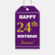 Étiquettes-cadeau Purple, Faux Gold 24e anniversaire + Nom personnal