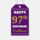 Étiquettes-cadeau Purple, Faux Gold 97e anniversaire + Nom personnal