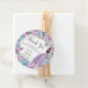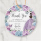 Cette étiquette de faveur ronde de coordination présente une fille coing dans une robe violette, de jolies fleurs lilas bleu et violet pastel bébé et des papillons bleus et violets. Personnalisez-les facilement et rapidement, appuyez simplement sur le bouton customiser pour réorganiser et formater le style et le placement du texte. Parfait pour rester sur les faveurs de remerciement! c) Le Happy Cat Studio