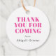 Un merci d'être venu sur le tag de faveur idéal pour une fête d'anniversaire avec un texte facile à modifier et un zèbre illustré charmant dans un casquette de fête sur un arrière - plan violet violet.
