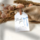 Étiquettes de remerciement modernes pour vos cadeaux de fête d'enterrement de vie de jeune fille avec ruban bleu. Parfait pour un thème "Elle noue le noeud" ou "Quelque chose de bleu avant que je le fasse" pour une fête de filles.