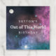 Cette marque colorée d'anniversaire de galaxie est parfaite pour une fête "hors du monde". Le design se compose d'un arrière - plan cosmique avec étoiles et typographie moderne.