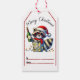 Étiquettes-cadeau Raton laveur festif avec bouteille et lumières de