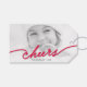 Étiquettes-cadeau Red Cheers Calligraphy Script Modern Photo Holiday