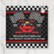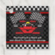 Red Racing Car À damiers Design Favor Card avec le texte qui peut être modifié pour convenir, ou supprimé et laissé vide pour un message manuscrit.
