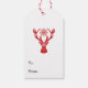 Elégante tête de cerf de Noël rouge avec de fiers bois et des flocons de neige.