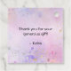 Un assortiment de beignets disposés le long des bords de cette étiquette qui peut être utilisé comme des faveurs ou comme un remerciement pour une fête d'anniversaire, une douche de mariée, une fête de fiançailles, une baby sprinkle, une douche de bébé, ou un "sip and see". Le texte "donut how to thank you" est modifiable et le "O" dans "donut" est remplacé par un beignet rayé violet. Le fond est un lavis aquarelle multi-ton avec des éclaboussures de peinture aquarelle. Disponible avec des produits assortis.