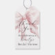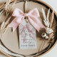 Simple, élégant et si féminin, ce favor de Baby Shower ou cette étiquette de cadeau présente un grand nœud rose aquarelle incliné sur le côté ajoutant une touche de charme. Un modèle de texte élégant avec une écriture manuscrite et des polices serif est inclus pour personnaliser avec le nom de l'invité d'honneur et le texte souhaité. Ces étiquettes sont un bon choix pour orner les faveurs de fête et les petits cadeaux pour vos invités.