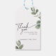 Étiquettes de remerciement modernes pour vos cadeaux de fête de Fête de Mariée avec des feuilles d'Eucalyptus dessinées à la main à l'aquarelle. Parfait pour un Thé de Mariée de Verdure.