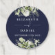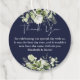 Étiquette de remerciement de mariage élégante à la flore verdoyante bleu marine personnalisée avec vos noms, date de mariage et message de remerciement spécial au verso. Conçue par Thisisnotme©